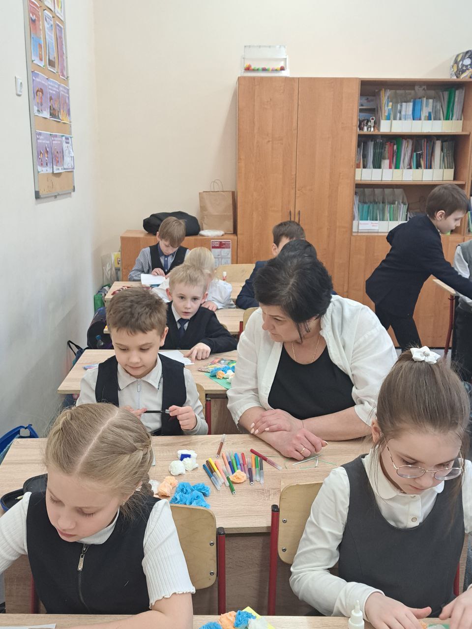 Вчера мы снова ходили в школу. Уже не в первый раз мы приглашены в школу 538 им. Гришина для проведения мастер-класса. Вместе с детьми делали открытки к 8 марта для женщин на передовой, рассказывали о празднике, о важных человеческих качествах, о том, что такое быть волонтёром и как можно помогать.
